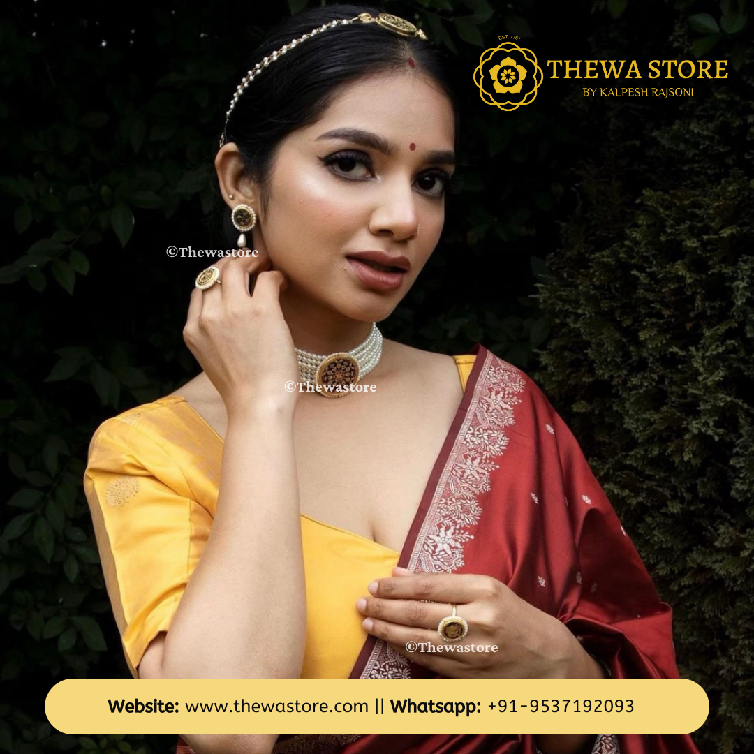 Refresh your look with handmade thewa art jewellery. We have variety of options crafted with royal motifs like elephant, peacock and bani thani.
