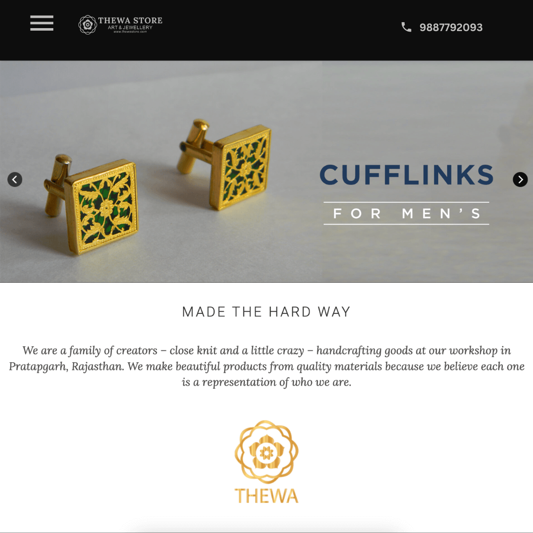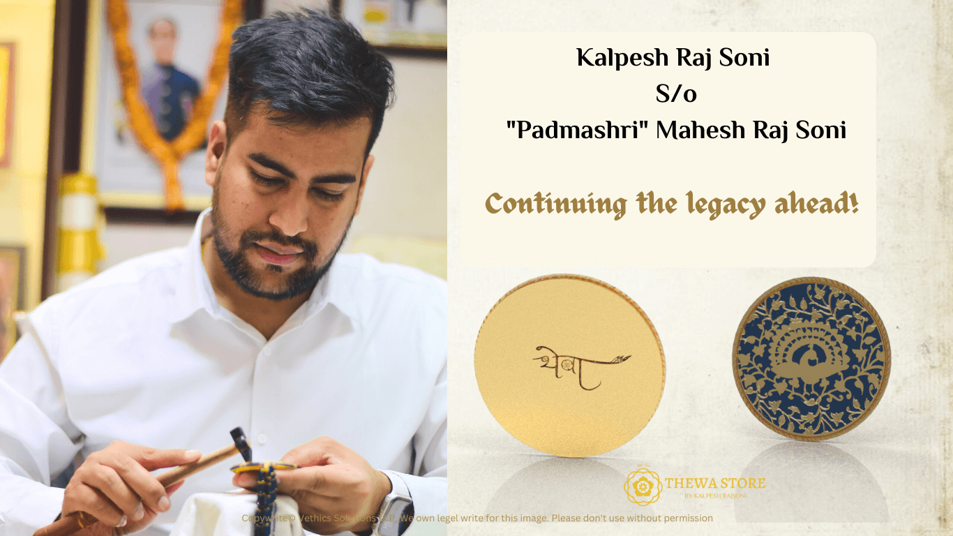 Thewa is a traditional jewellery making art of Rajasthan, India which is 400-year-old. Our family has been doing this artwork since ages. Generations has been passed and legacy has been continued says Kalpesh, founder of Thewastore. He is S/O the great thewa artist, Padmashri Mahesh Rajsoni. He is a computer engineering graduate with honours degree from Rajasthan Technical University, Kota. Engineering is my profession and Art is rooted in my genes, is the belief of Kalpesh. He tells, I have seen the struggling journey of my father to keep this art alive and make it popular so it can reach to people. Keeping his dream in my mind and with the vision to make his dream come true, I launched our first online store in 2009 while pursuing my engineering degree. That time internet was not much revolutionary, so it could not gain much visibility.
